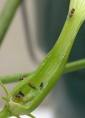 After the flies left. I was able to get this picture of the basal extentions. It will be interesting to see if the flies were able to pollinate any of the other flowers. I'll keep you posted. September 26, 2002 | ![]() |
