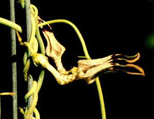 The flowers are also 'un-tidy' in that once they open, they seem to quickly collapse and the pedicel weakens so that the flower is no longer held upright. However, I find the angled tube, the grayed colors, and the over all shape interesting enough to continue growing it. |