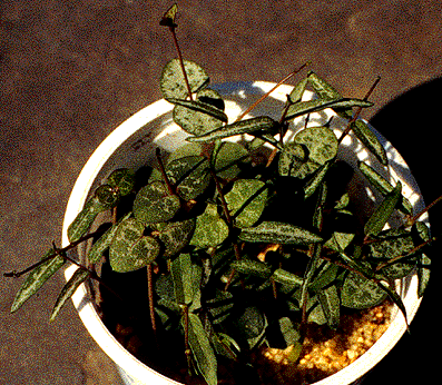 This is a picture of seedlings from one seed pod taken from C. debilis ssp. linearis showing a wide variety of leaf shape and coloring. There are also greater and lesser amounts of marbelling. As these plants have grown I have also noticed that some are climbers and others are trailers. |